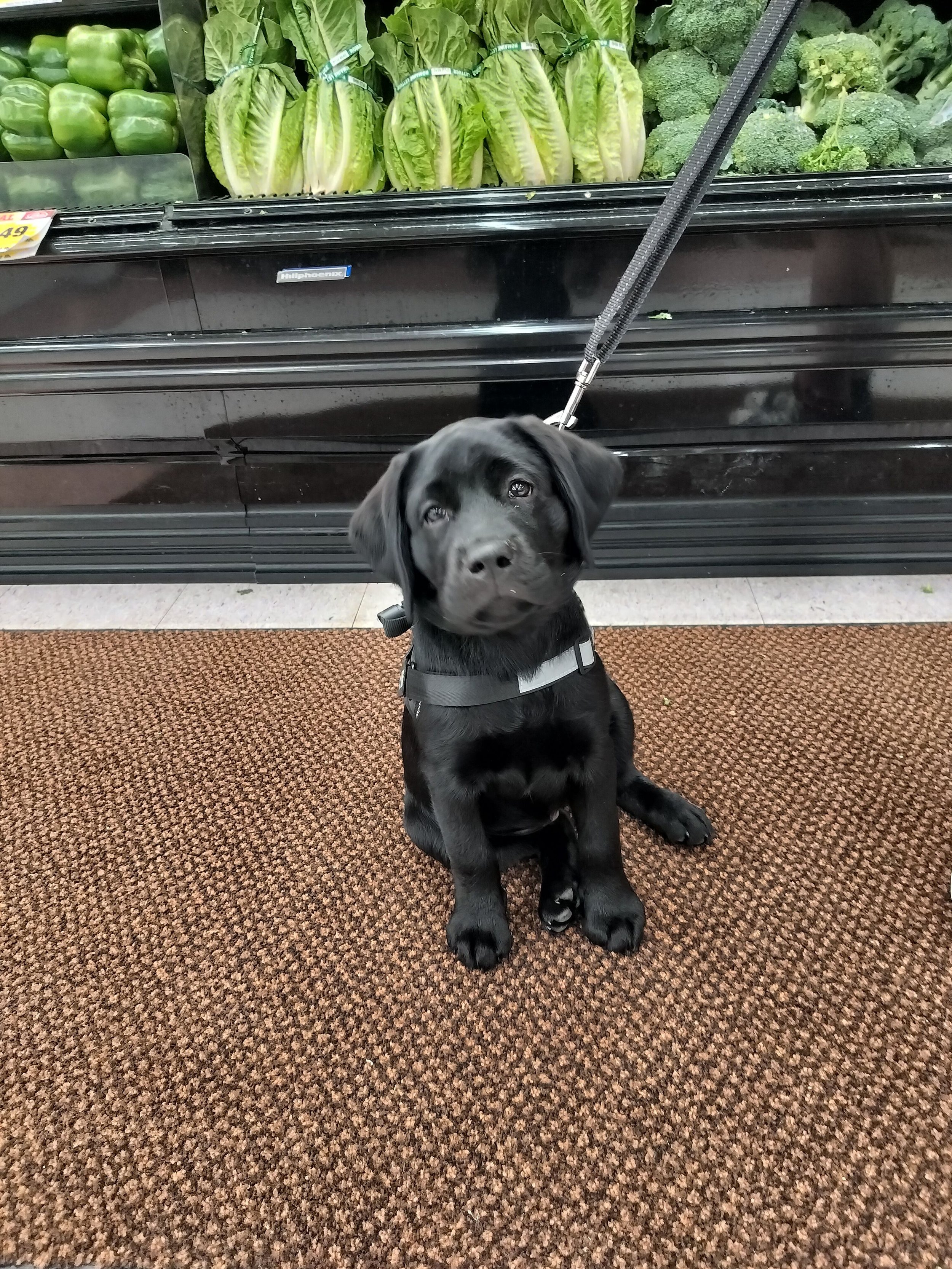 This week, Apollo made her first trip to the Landis grocery store in Perkasie! She did an awesome job going through the automatic glass doors with almost no hesitation!! She enjoyed her walk all the way from produce to dairy (the very last aisle). She interacted very well with several people and was overall quite a joy.